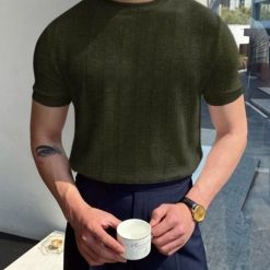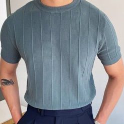 - This round neck plain knittedpolo t-shirt shows off your arms and chest muscles well. It’s the perfect gift for fathers. husbands. sons and brothers.